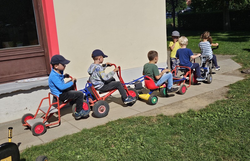 Bei fast jeder Witterungslage gehen wir mit den Kindern in unseren großen Außenbereich und bieten dort verschiedenen Aktivitäten an bzw. motivieren die Kinder zu selbstgewählten Spielprozessen.