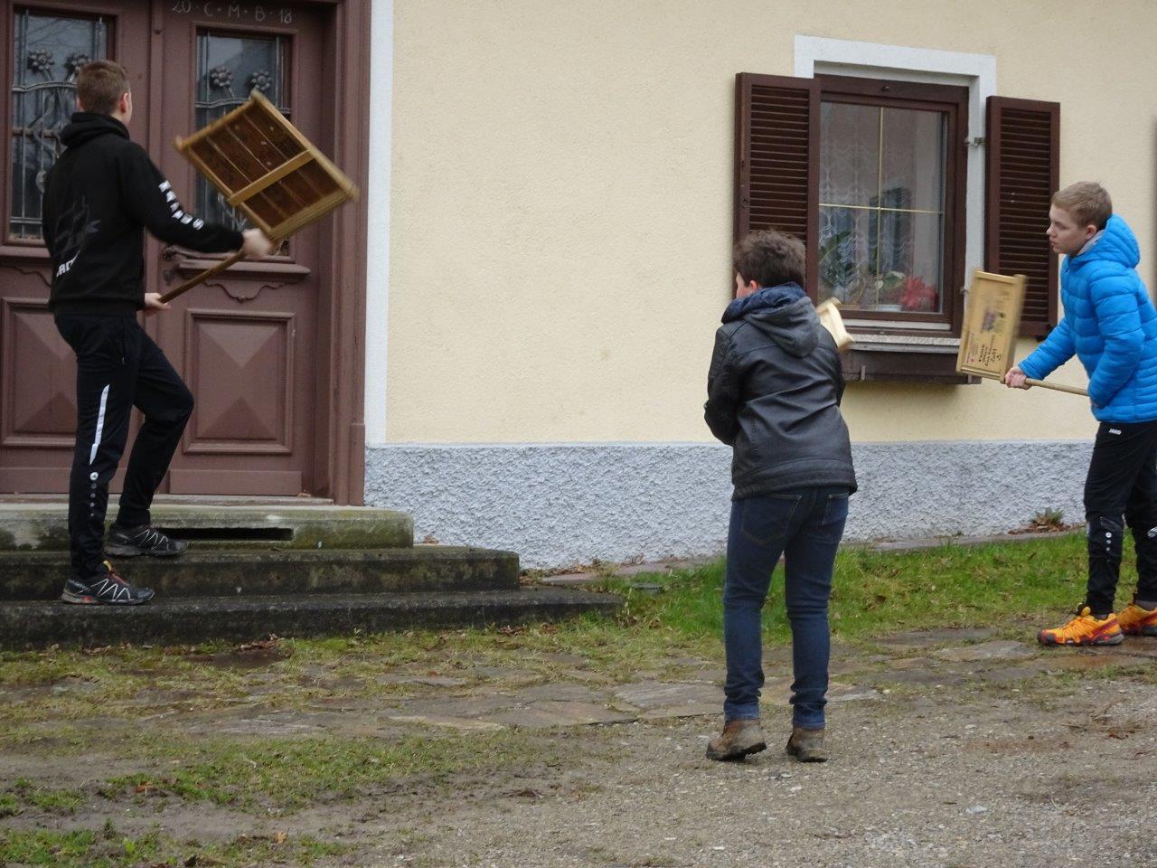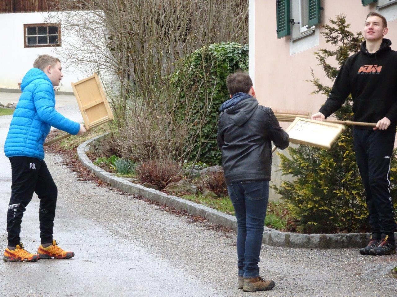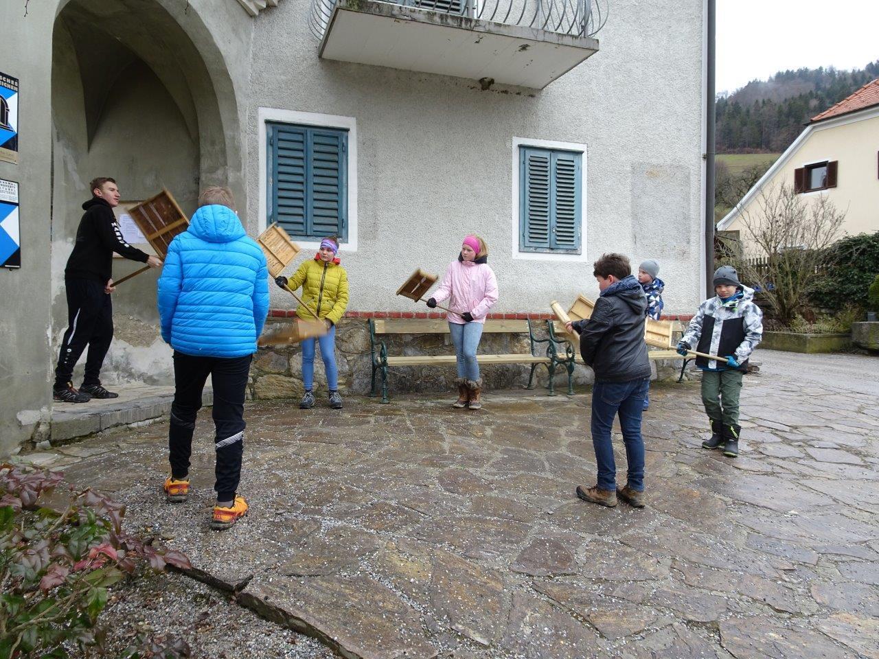 Ihr Ratschenspruch am Karfreitag lautete heuer: "Wir ratschen, wir ratschen zum Englischen Gruß, den jeder Christ beten muss. Kniet`s nieder, kniet`s nieder auf eure Knie, bet`s drei Vaterunser und drei Avemarie!"