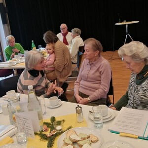 Es wurde auch an­ge­regt geplaudert und gelacht und eine be­son­dere Freude war der Be­such von klein Kamilla mit Oma und klein Aurelia mit Mama. So wurde der Nach­mit­tag zu einem kleinen "Ge­ner­ation­en­tref­fen" mit schönen Be­geg­nun­gen und Ge­sprä­chen.