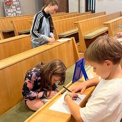 Für den kreativen Teil haben wir es uns in der Kirche gemütlich gemacht und jedes Kind hat sich selbst porträtiert, wobei echte Kunstwerke entstanden sind. Anschließend spielten wir „Gesichter raten“ – eine lustige Herausforderung, bei der alle gezeichneten Gesichter richtig erkannt wurden. Zum Abschluss versuchten wir wieder bis 21 zu zählen (das müssen wir noch üben und ist nicht so einfach wie es klingt 😅) und mit einem lauten „Jungschar Lannach“ war die lustige Jungschar auch schon wieder zu Ende 🤩