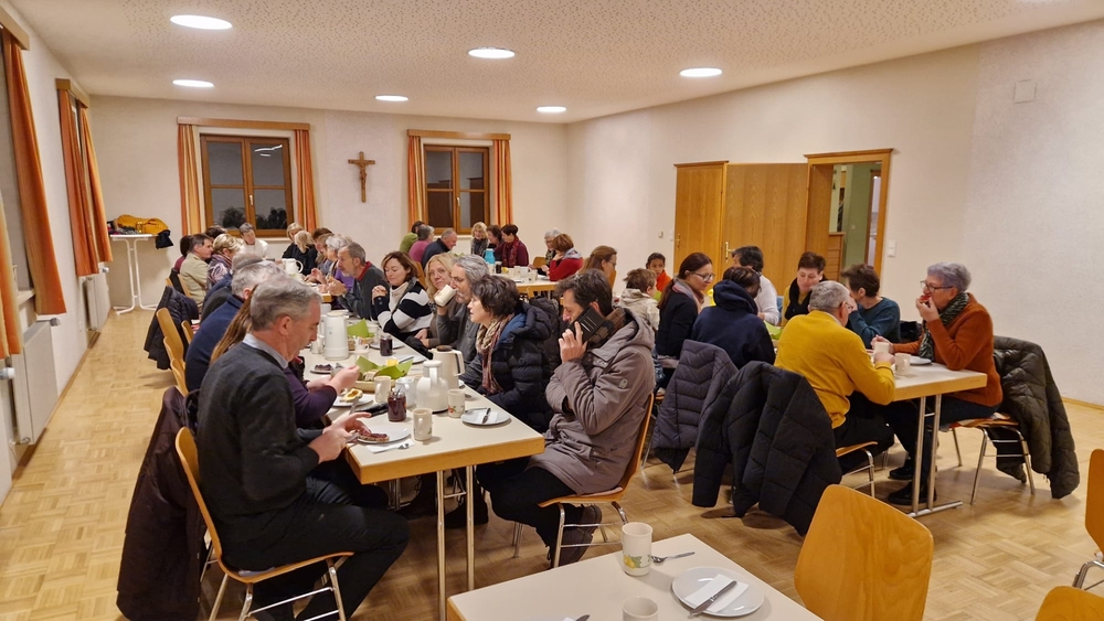 Zum anschließenden Pfarrkaffee lud der Kirchenchor herzlich ein und freute sich über viele Gäste, die das Zusammensitzen bei Kuchen und Kaffee/Tee in netter Gemeinschaft - auch mit Diakon Johannes und seiner Familie - sehr genossen. Ein netter Ausklang eines besonderen Vormittags!