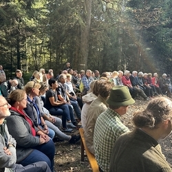 Alle Anwesenden lauschten gebannt im Rund unter herbstlicher Sonne und fallenden Blättern und bekamen in verschiedenen Gleichnissen versteckt für „ihre Premstättner Natur“ - speziell für den Kaiserwald - die Aufgaben und die Verantwortung zugeteilt. Die geleistete Spende für Speis und Trank geht an das Sozialprojekt der Gemeinde „Und das Christkind gibt es doch!“.