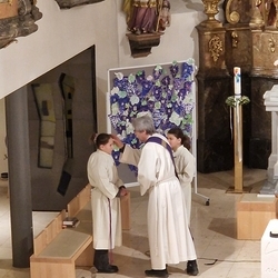 Nach dem feierlichen Einzug betonte Vikar Norbert in der Begrüßung, wie schön es ist, dass Johannes neben vielen anderen ehrenamtlichen Tätigkeiten (Kantor, Organist …) nun auch den Dienst des Diakons ausüben wird.