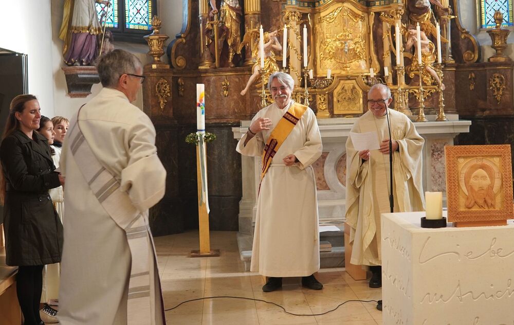 Der neu geweihte Diakon Johannes Chum feierte zusammen mit Vikar Norbert Glaser und Diakon Michi Zepf seine „Premiere“ als Diakon in seiner Pfarre, in der er schon seit gut 30 Jahren beheimatet ist.