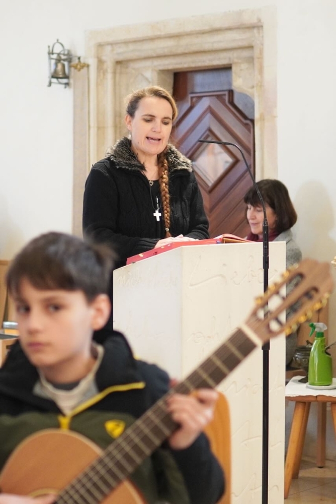 Bei der Wort-Gottes-Feier am Sonntag sprach WGF-Leiterin Christa Habith in Bezug auf Jesaja von der uralten Sehnsucht der Menschen nach Frieden und Gerechtigkeit. Nur durch Umkehr, siehe Johannes der Täufer (Mt 3, 1-12), kann Veränderung geschehen und Gott in uns ankommen. Umkehren heißt Haltungen überdenken, Altes verlassen und die Herzen öffnen.