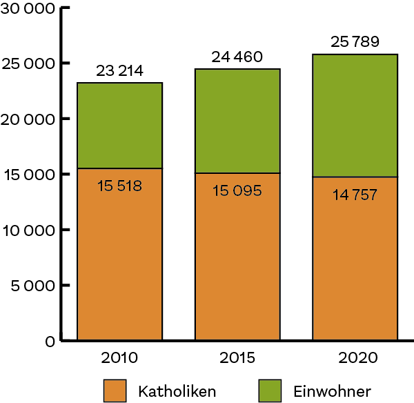 Die demografische Entwicklung für den gesamten Seelsorgeraum zeigt, vor allem durch Zuzug, ein starkes Bevölkerungswachstum. Die Anzahl der Katholikinnen und Katholiken bleibt in absoluten Zahlen betrachtet etwa konstant, was gleichzeitig bedeutet, dass der relative Anteil der Katholikinnen und Katholiken im Vergleich zur Gesamtbevölkerung schrumpft. Dieser generelle Trend ist auch auf Pfarrebene sichtbar, mit kleinen Unterschieden in seiner Ausprägung. Man kann davon ausgehen, dass sich dieser Trend fortsetzen wird, wenngleich sich das absolute Wachstum etwas einbremsen kann. Der relative Katholikinnen- und Katholikenanteil wird voraussichtlich weiterhin sinken, wobei die Pastoral auf die Gesamtbevölkerung ausgerichtet sein soll.