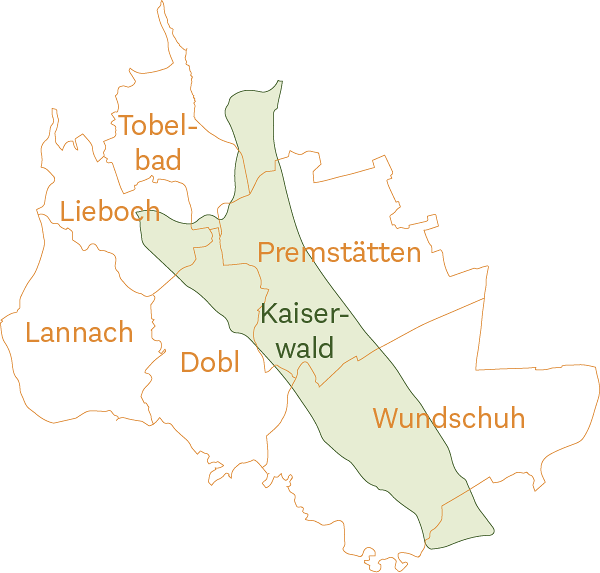 Der Kaiserwald ist ein etwa 30 Quadratkilometer großer Waldstreifen, der den Seelsorgeraum zentral durchzieht. Der Wald war früher in herrschaftlichem Besitz und das zugehörige Schloss Gjaidhof in Dobl diente als kaiserlicher Jagdsitz. Geologisch erhebt sich das Gebiet des Waldes als Plateau etwa 27 Meter über dem westlichen Kainachtal und dem östlich angrenzenden Grazer Feld. Bedeckt ist dieses Plateau mit einer Lehmhaube, die zur Ziegelherstellung Ende des 19. und vor allem im 20. Jhdt. genutzt wurde. An den Rändern des Kaiserwaldplateaus ergießen sich zahlreiche Quellen und über lange Zeit lieferte der Wald Bau- und Rüstholz für landesfürstliche Bauten in Graz, unter anderem für den Ausbau der Zisterne am Grazer Schlossberg.