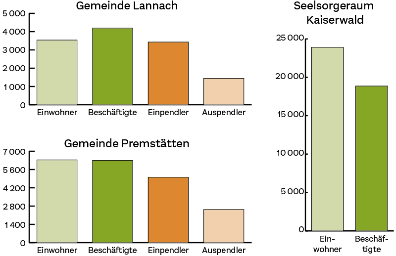 In der Gemeinde Lannach gibt es aktuell mehr Arbeitsplätze als Einwohnerinnen und Einwohner und in Premstätten sind es in etwa gleich viele. In beiden Gemeinden gibt es deutlich mehr Einpendelnde als Auspendelnde. Bei der Einpendlerquote (=Einpendler gemessen an der Einwohnerzahl) sind diese Gemeinden steiermarkweit auf den vordersten Plätzen.